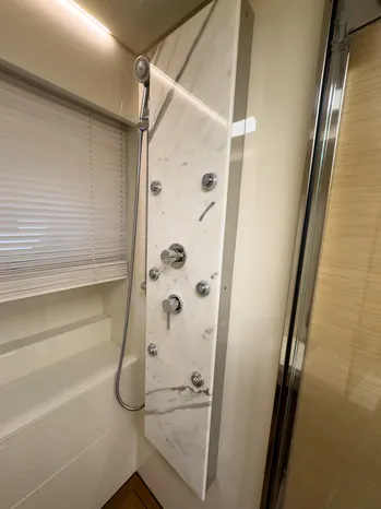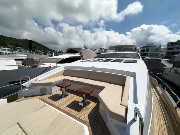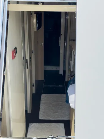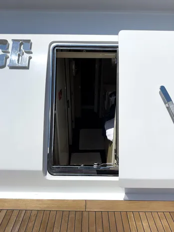 Weathertight led lights and courtesy led lights on ceiling Saloon Balcony with electric sliding door on the starboard side TV cabinet and Hi-Lo TV mechanism in the salon