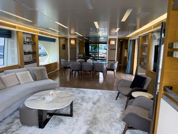 Aft area with large forward-facing C-shape sofa