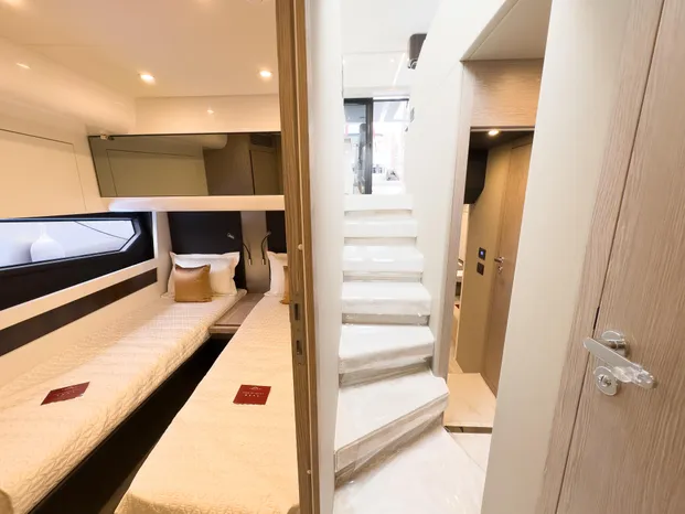 The eco-conscious lightness of carbon fiber, combined with the triple IPS propulsion system and optimized hull flows, allow her to achieve unparalleled levels of performance, a silent presence and reduced fuel consumption. Spacious interiors with decisive lines make for a sport-oriented but welcoming lifestyle.