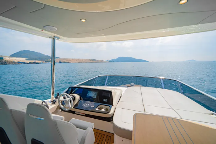 - Extra driving seat on the flybridge dashboard with fixed leg, with cover