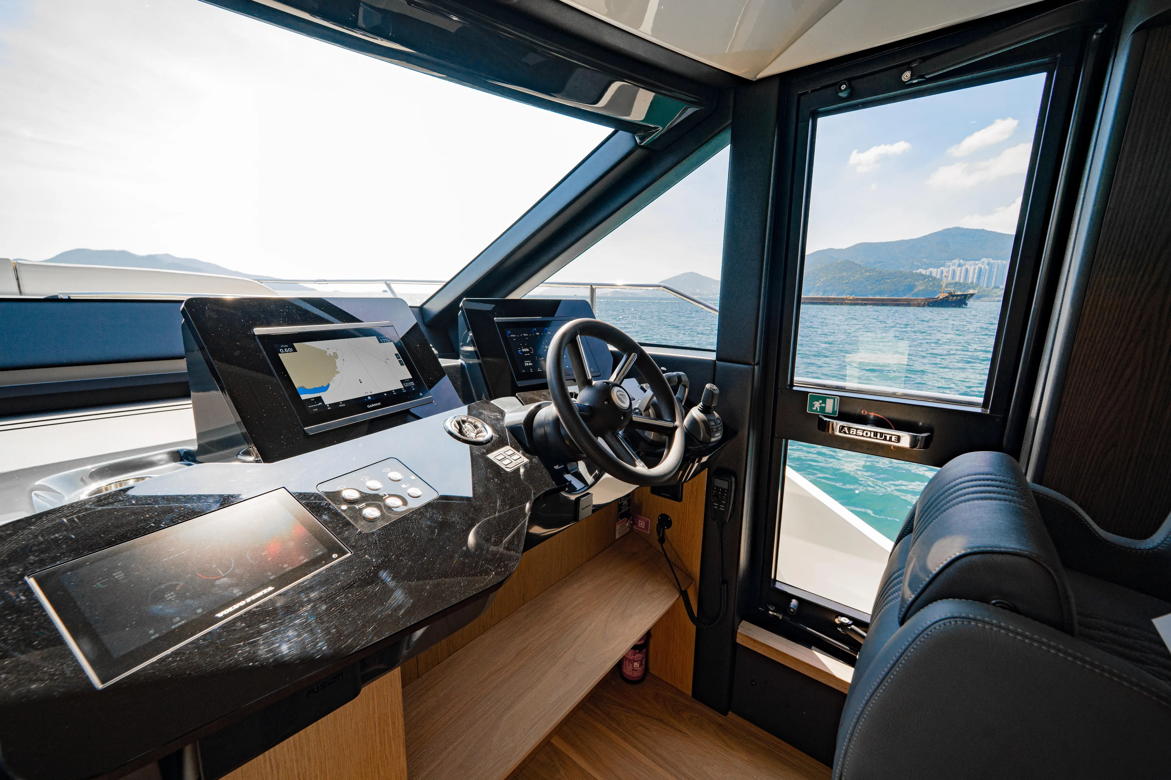 - On/Off bow thruster with double control in main deck and flybridge with dedicated automatic fire extinguishing system
