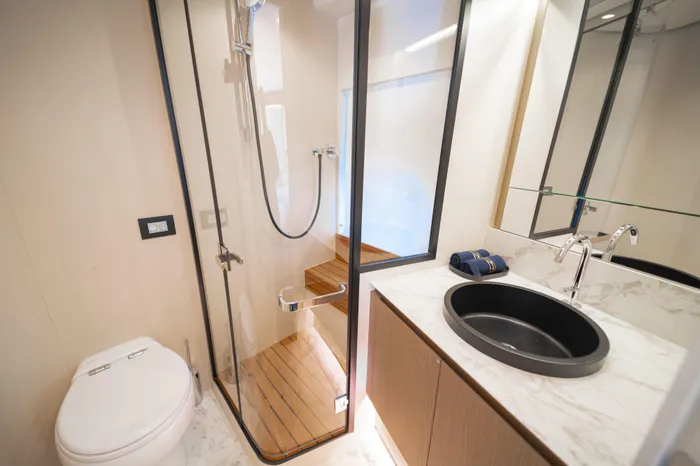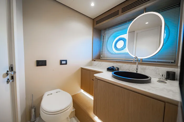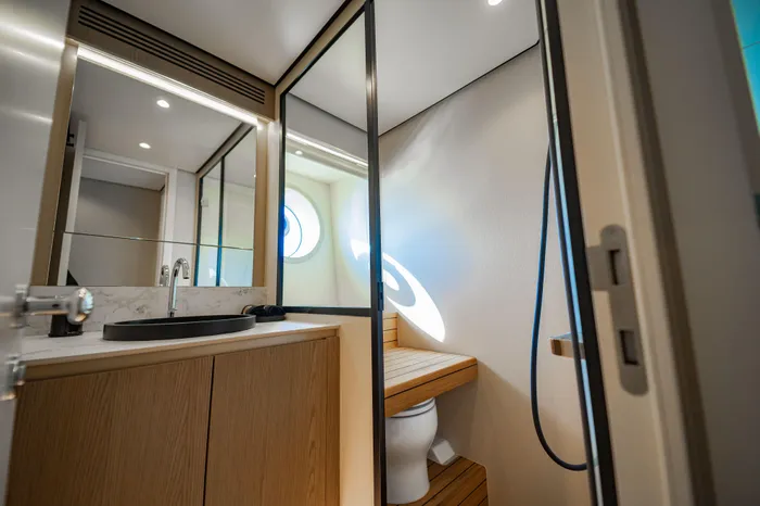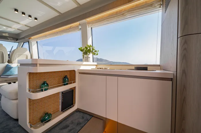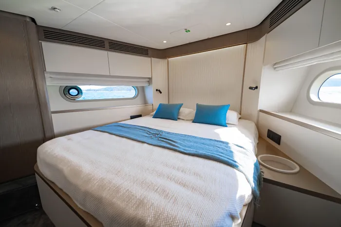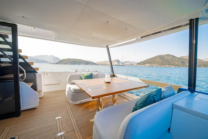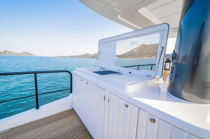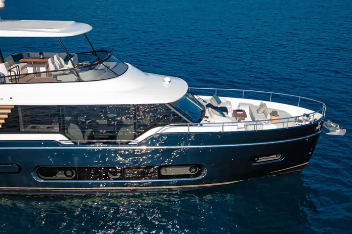 - Flybridge Hard Top with electric awning & island volcanic painted mast
