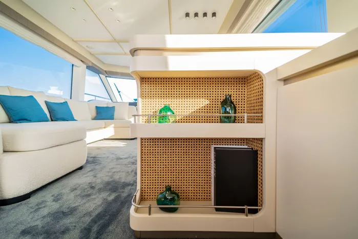 - Ottanio Green carpet in salon, helm area and stairs to lower deck