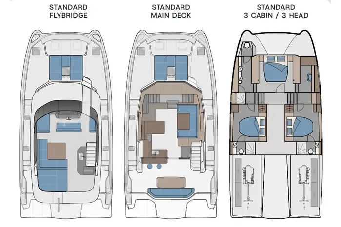 Available with multiple cabin configurations, plus options like the Aquila Hydro Glide foil system and interior helm‚ this yacht adapts perfectly to your cruising lifestyle.