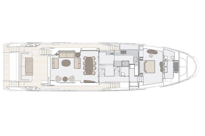 A compact superyacht with an imperial essence, the Grande 27M exhibits a multi-talented philosophy by combining sumptuous comfort with performance.