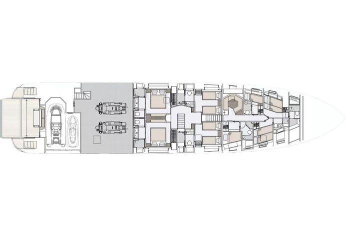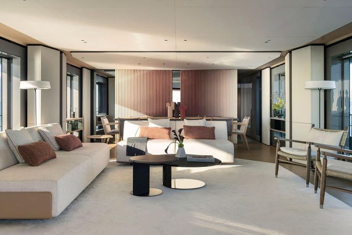 With her original design and modern ethos, the Grande 36M is a superyacht that synthesizes cutting-edge style and attitude. From the unprecedented semi-walkaround upper deck inspiring freedom of movement to the fully retractable side windows posing a special gateway to the sea, all elements contribute to visually blend interior and exterior spaces. A barrierless lifestyle naturally blurs the boundaries between onboard pleasure and oceanic greatness.