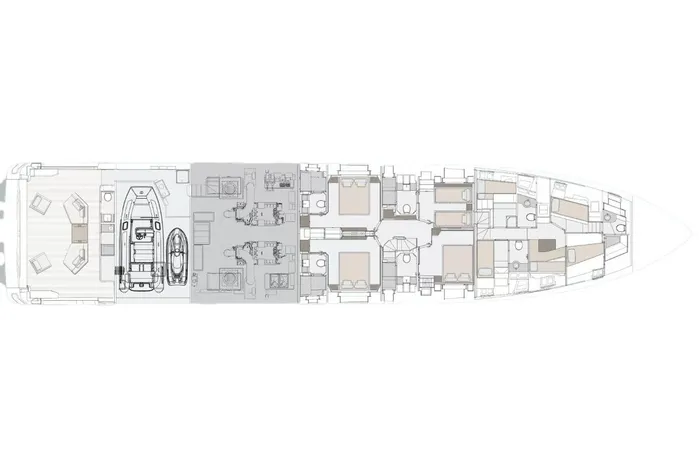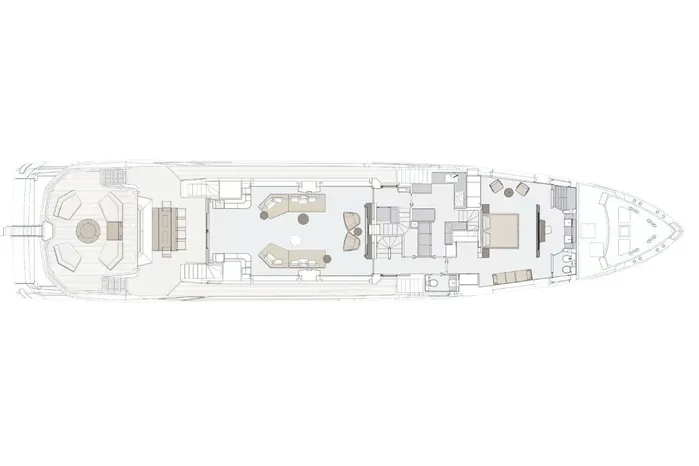 The highly innovative aesthetic of the Grande Trideck introduces the "three decks + one" ideal: a new and spectacular half-raised aft deck that expands the boundaries of the classic triple-decker concept. The final and fascinating ensemble of four cascading terraces makes for a uniquely dynamic and sea-immersive effect, giving the traditional onboard spaces a contemporary yet unexpected twist.