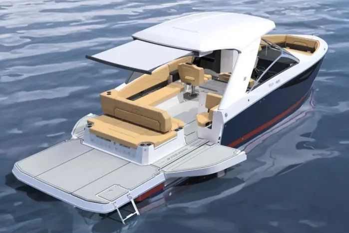The Four Winns H33, in its inboard version, embodies sophistication and refinement with its sleek lines and distinctive design, featuring an integrated rubbing strake, vertical bow, and inclined windshield. Onboard, every detail is carefully considered to provide a pleasant lifestyle and refined moments at sea. The H33 inboard stands out with its two large terraces, exclusive in this segment, creating additional space to enjoy the sun while making access to swimming easier.