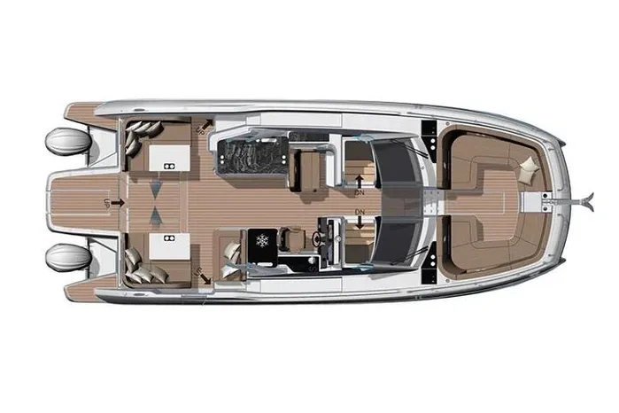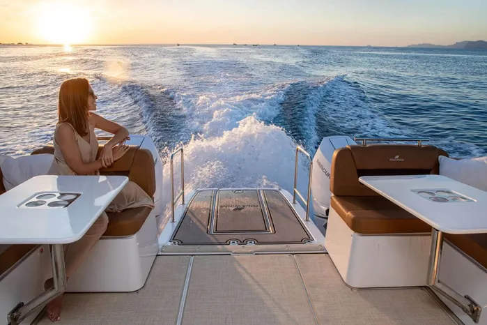 The TH38 seamlessly blends the adventurous spirit of a dayboat with the comfort and sophistication of a cruiser. At the helm, it offers two distinct windscreen options: a full-height windscreen for maximum protection and seasonal comfort, or a sleek, low-profile version that enhances airflow and promotes a sense of open-air freedom. Four Winns boaters can enjoy year-round cruising in comfort thanks to the TH38’s full-height windscreen and new sport-top options, offering enhanced weather protection and a refined boating experience in all seasons.
